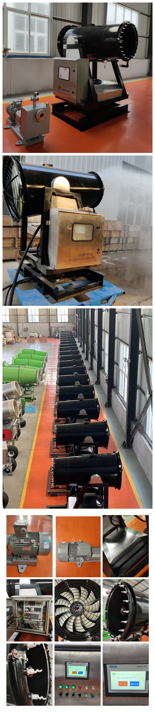 降塵炮系統是一種經(jīng)過(guò)特殊設計,能夠實(shí)現將均勻連續混合物(水,空氣,添加劑)噴射超遠距離的專(zhuān)利產(chǎn)品,成霧水滴尺寸均勻可控,噴射流指向性。
