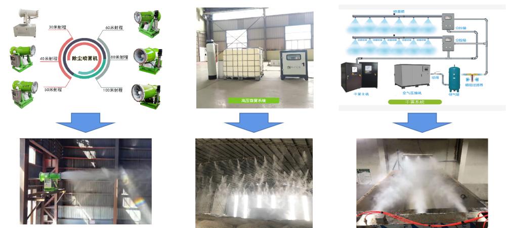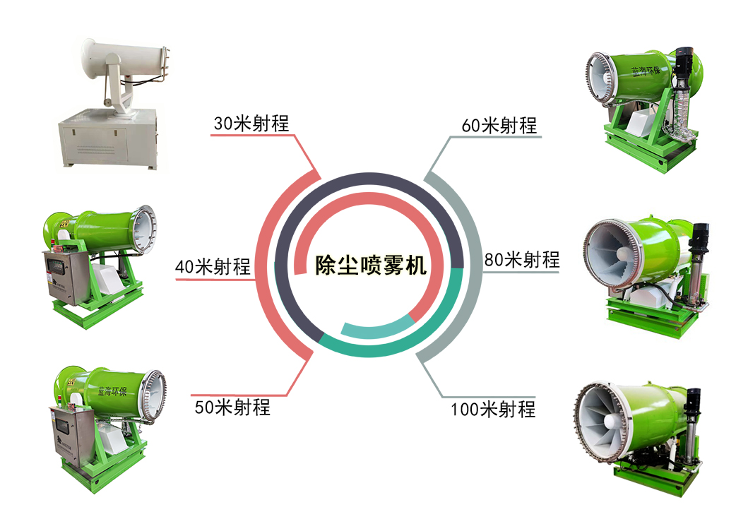 風(fēng)送式除塵噴霧機是一種經(jīng)過(guò)特殊設計,能夠實(shí)現將均勻連續混合物(水、空氣、添加劑)噴射超遠距離的專(zhuān)利產(chǎn)品,成霧水滴尺寸均可控,噴射有指向性。