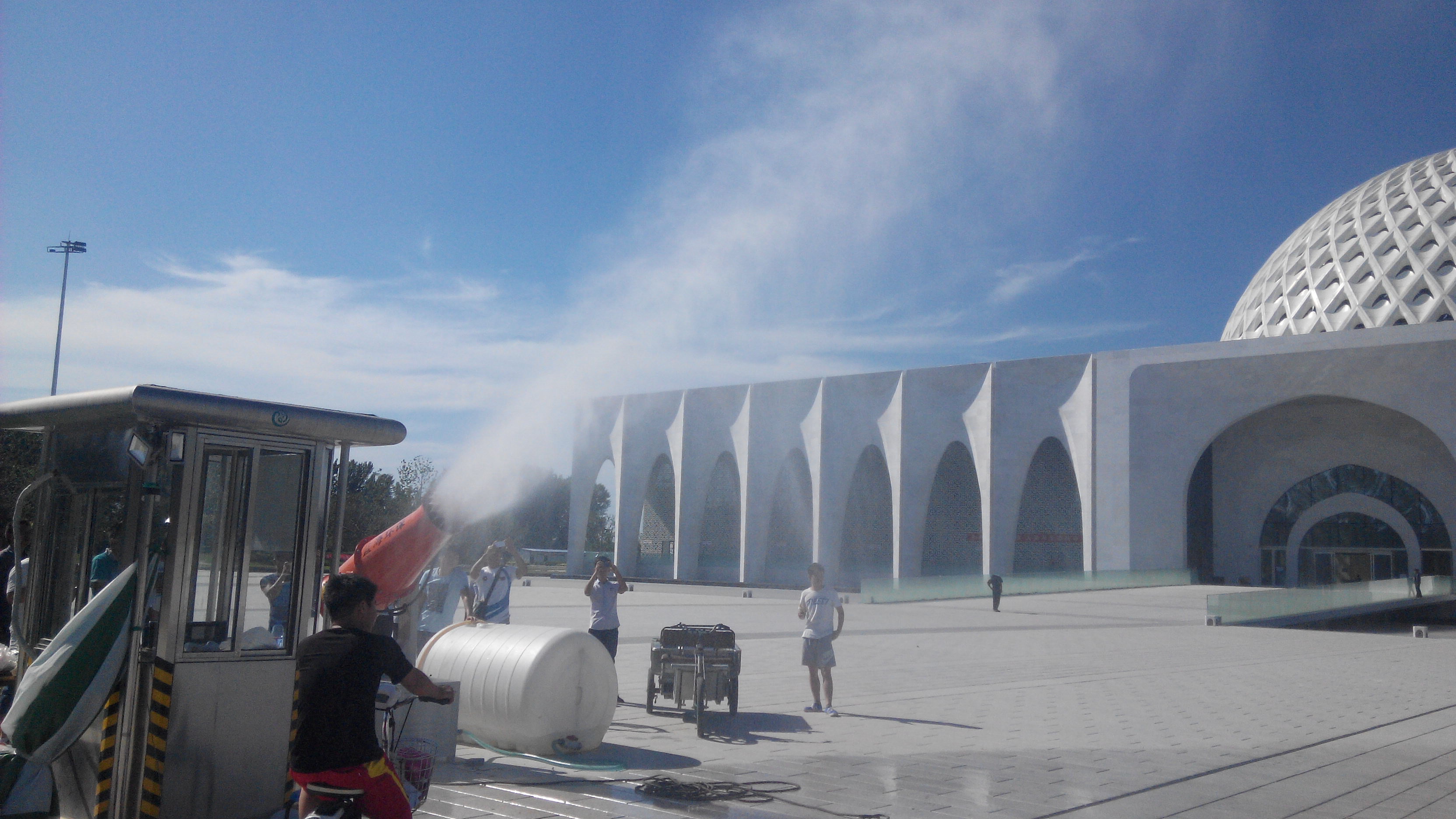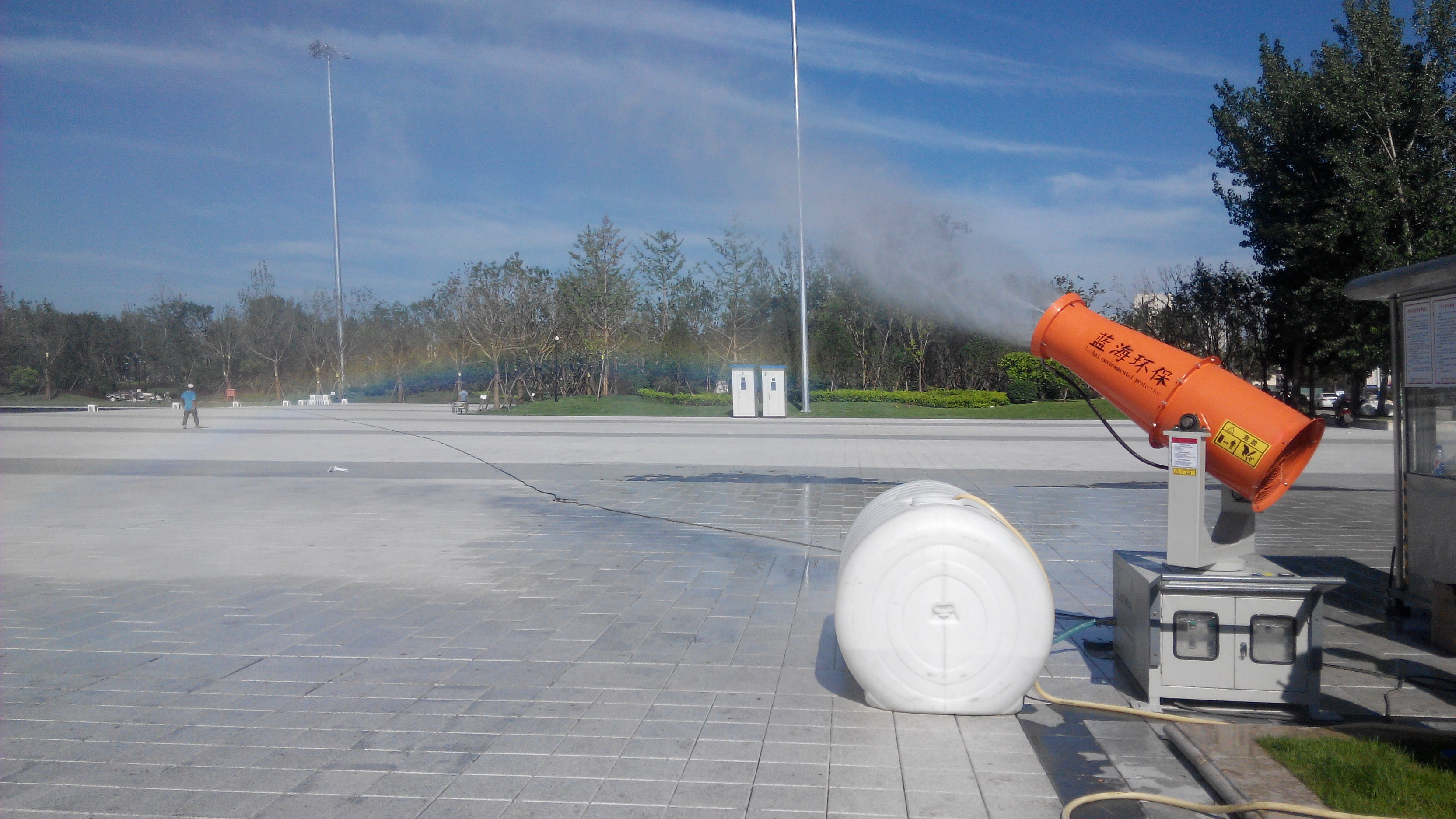 廊坊環(huán)保局定制除塵噴霧機用于民族文化宮廣場(chǎng)降溫。