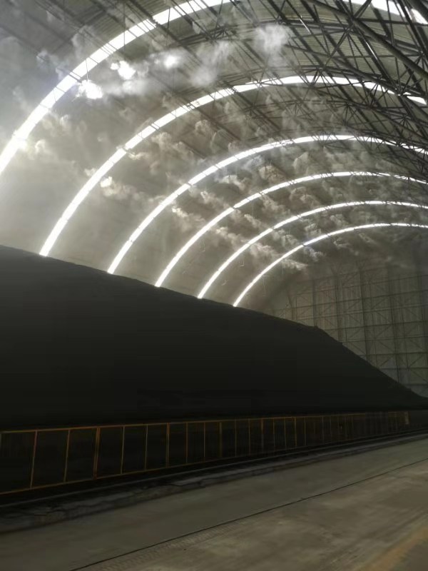 當有大量細小的水滴組成霧團,完全覆蓋住起塵點(diǎn)時(shí), 會(huì )達到 好的抑塵效果。微霧抑塵系統利用超高壓把水霧化為10μm以下的水霧,在起塵點(diǎn)上方形成霧團完全罩住起塵點(diǎn),這樣在物料起塵時(shí),粉塵完全進(jìn)入霧團,與水霧充分結合,并且逐漸加大,在重力的作用下落到地面。