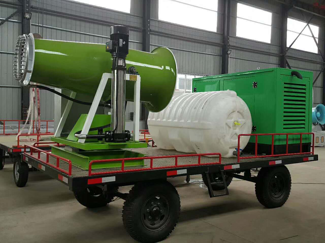 霧炮機專(zhuān)門(mén)用于城市開(kāi)發(fā)區建設工地、拆遷工地、車(chē)站儲煤場(chǎng)、洗煤廠(chǎng)、焦化廠(chǎng)、鐵礦、鋼廠(chǎng)、港口等的揚塵風(fēng)沙控制,其 遠噴水距離為30到160余米,單車(chē)蓄水量近20噸,主要作用是噴霧抑塵,同時(shí)具備灑水和道路作用,有效抑制揚塵的產(chǎn)生。在施工使用中,除塵霧炮機噴出的水霧像毛毛細雨一樣隨風(fēng)飄散,飄在臉上 像出了一層汗水,絲毫不會(huì )噴濕衣服,也不會(huì )在地上“和泥”,水霧越細小,反而越容易吸附細顆粒物,且每小時(shí)耗水量少,比灑水車(chē) 省水。霧炮機不僅能用于建筑工地施工現場(chǎng)水霧降塵,還能裝在高樓的樓頂,每天定時(shí)進(jìn)行噴霧降塵,霧炮機可長(cháng)久使用,有效降低了道路車(chē)輛揚塵,還能增加空氣濕度,幫助改善周邊道路和小區的空氣質(zhì)量。