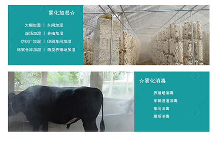 大棚加濕、車(chē)間加濕、煤場(chǎng)加濕、養殖加濕、紡織廠(chǎng)加濕、印刷車(chē)間加濕、棉絮倉庫加濕、菌類(lèi)養殖場(chǎng)加濕
